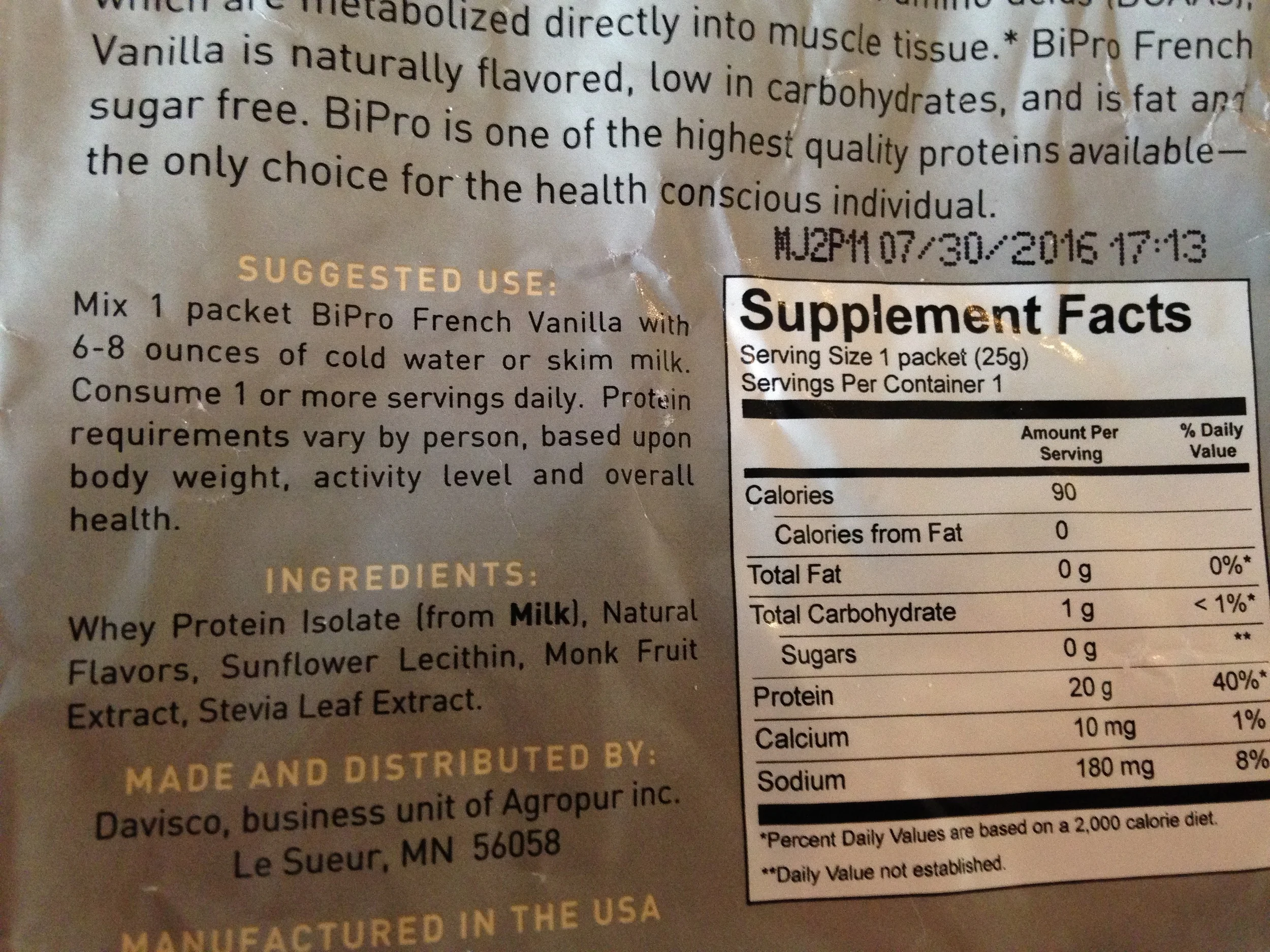 - 1 packet of BiPro French Vanilla Instant Whey Protein Isolate